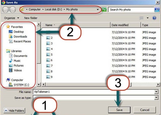 7. Select a folder on your computer where you want to save a new photo. Click on the "Save" button. Ussually, photo is saved in "Downloads" folder (My computer --> Downloads).